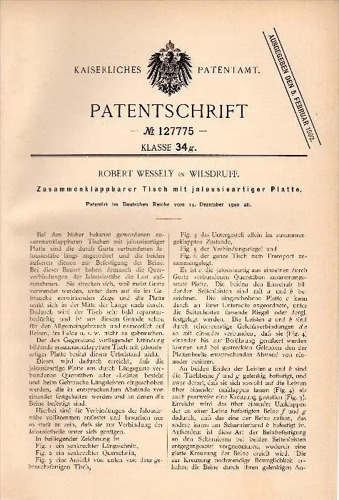 Original Patentschrift - Robert Wessely in Wilsdruff , 1900 , klappbarer Tisch , Möbel , Tischler !!!