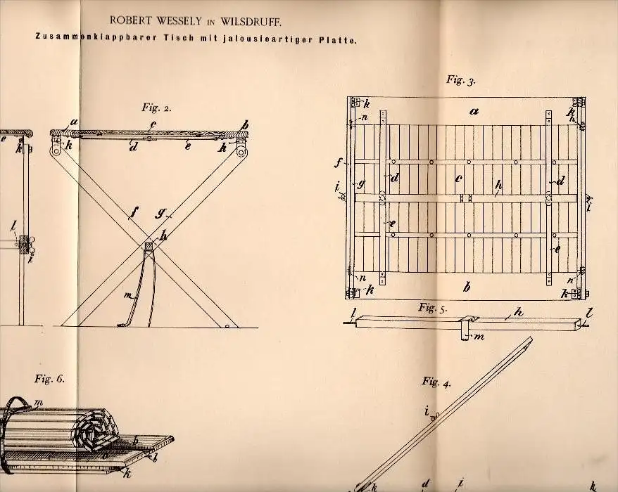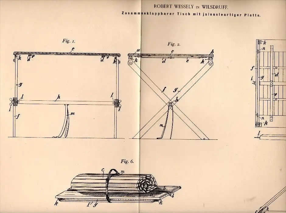 Patent: Zusammenklappbarer Tisch mit jalousieartiger