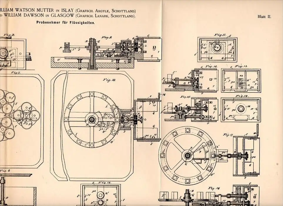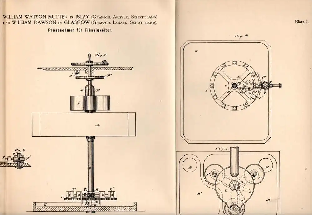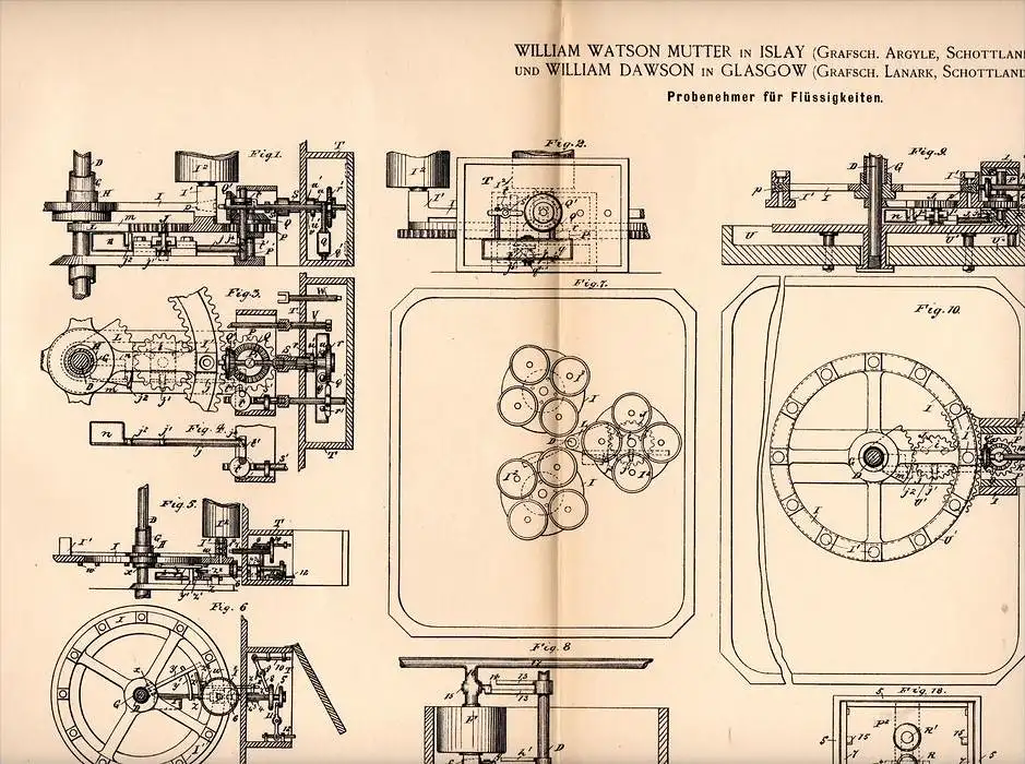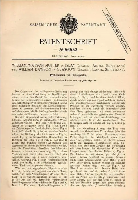 Original Patentschrift -W. Watson Mutter in Islay , Argyle ,1890, distilled apparatus for liquids , distillation Glasgow