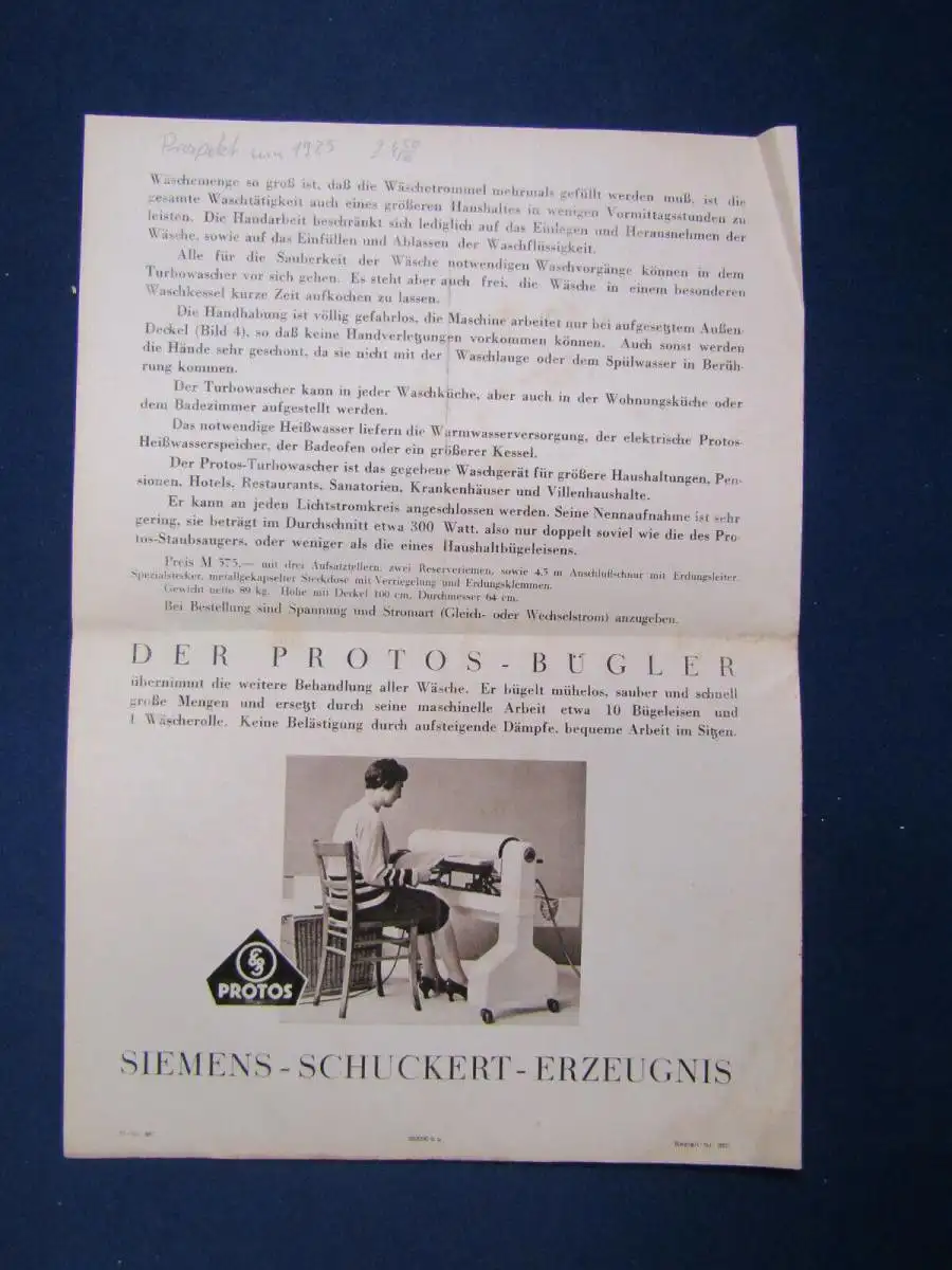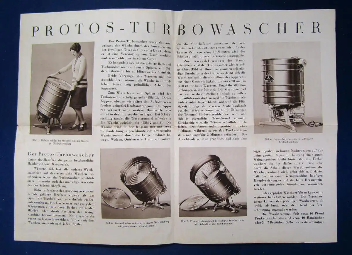 Original Prospekt Protos - Turbowascher um 1925 Technik Werbung Reklame sf