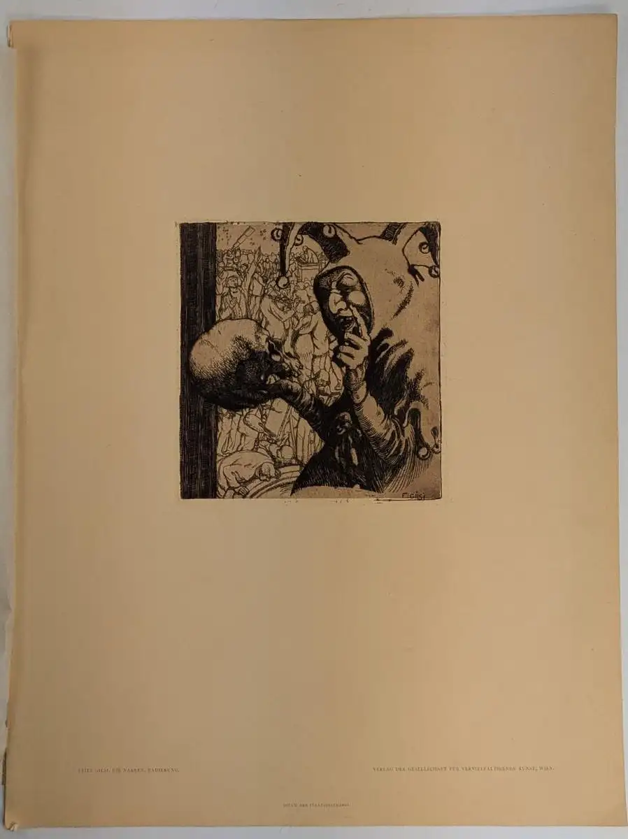 Bemerkungen: Zustand: Gut. Die Grafik ist altersbedingt leicht gebräunt und weist minimale Läsuren auf, welche sich allerdings eher auf dem Seidenhemdchen zu erkennen geben. Der Druck ist in sehr gutem Zustand. Auf dem Seidenhemdchen sind außerdem minimale Verunreinigungen und Löcher // Es handelt sich um eine Originale Radierung von Fritz Gilsi, gedruckt von der Staatsdruckerei für den Verlag der Gesellschaft für vervielfältigende Kunst, Wien Fritz Gilsi (18781961) war ein bedeutender Schweizer Maler, Grafiker, Karikaturist und Kunstpädagoge. Sein vielseitiges Werk umfasst impressionistische Gemälde, symbolistische Radierungen und satirische Karikaturen.
