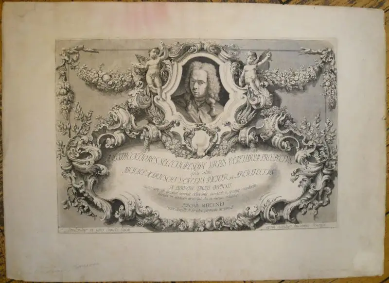 Orsolini, Carlo (1710 - Venedig - 1780),, Rocaillekartusche mit Bildnis Michele Marieschi. Radierung