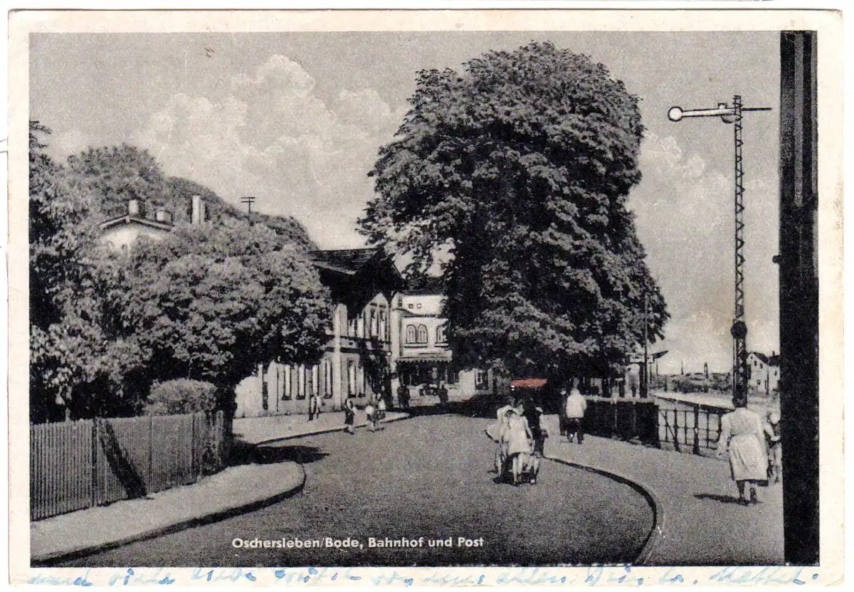 Oschersleben Bode, Bahnhof u. Post, 1950 gebr. sw-AK