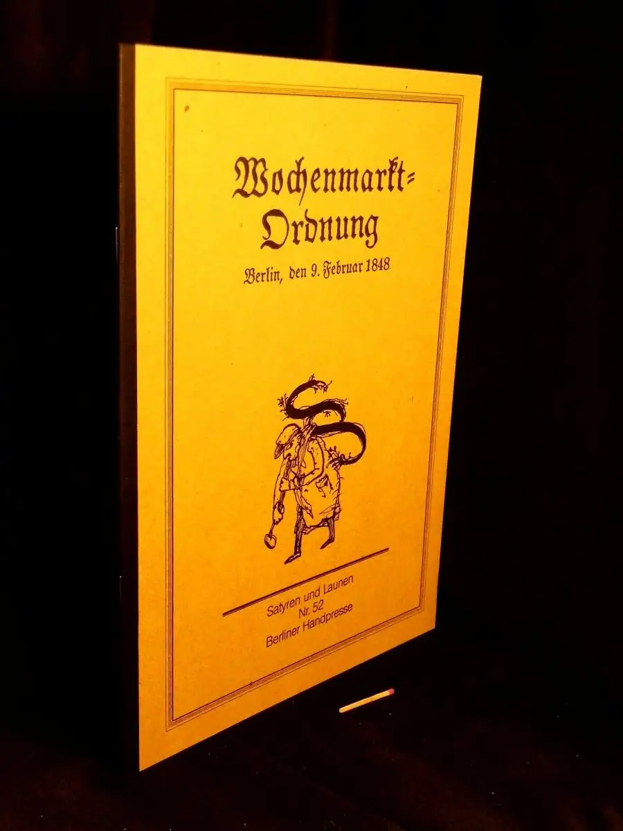 Otto, Uwe (Herausgeber): Wochenmarkt=Ordnung. Berlin, den 9. Februar 1848 (Wochenmartkordnung) - aus der Reihe: Satyren und Launen - Band: 52 LAGERRÄUMUNG.