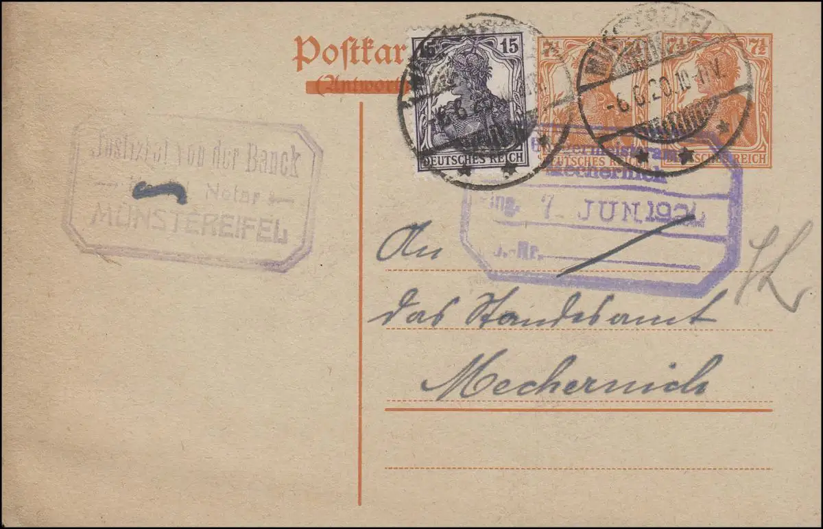 P 119A Germania 7 1/2 - 7/2 avec Germania 15 MÜNSTEREIFEL 6.6.20 n.h Mechernich