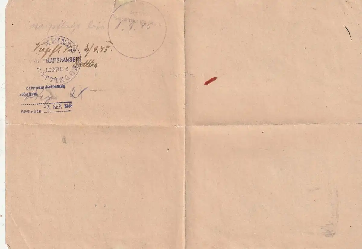 PERSONALAUSWEIS / ZEITWEILIGE REGISTRIERUNGSKARTE 1945