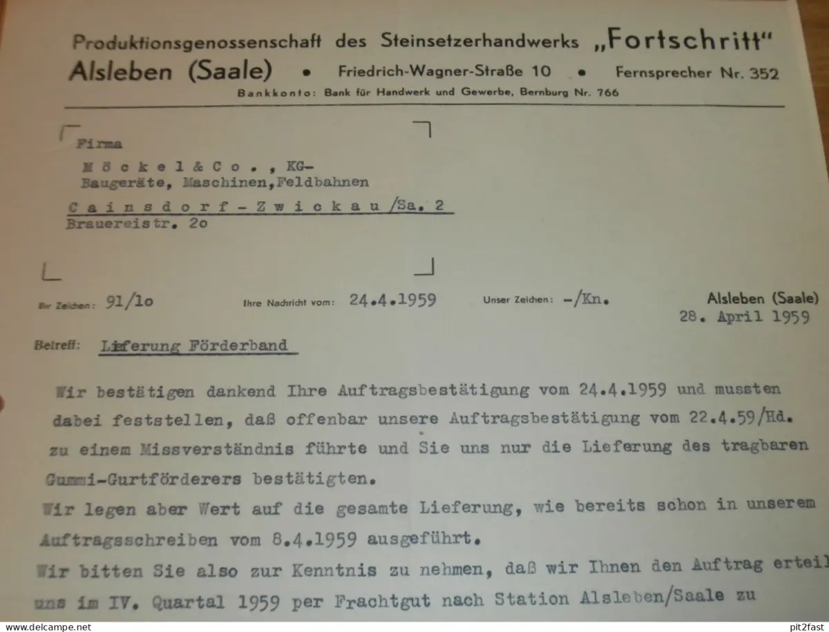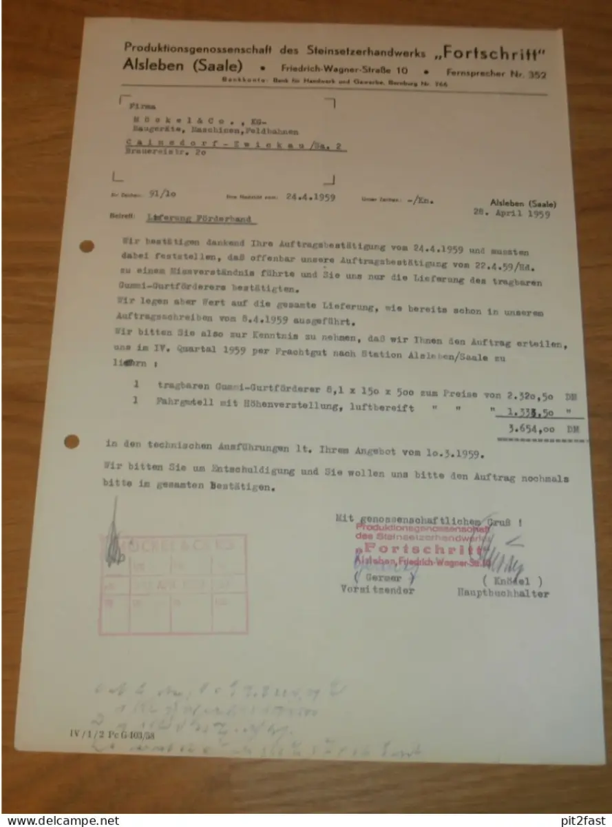 PGH Steinsetzer " Fortschritt " in Alsleben , 1959 , Herr Germer , Herr Knödel , altes Dokument , Reklame / Werbung !!AZ-WR/2m