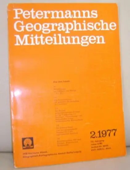 Titel: Petermanns Geographische Mitteilungen. 2 / 1977, 121. Jahrgang. - Aus dem Inhalt: Julius Fink u. a. - Bemerkungen zur Lößkarte von Europa 1 : 2,5 Mio / Manfred Altermann: u. a.: Zur Kennzeichnung der quartären Deckschichten im Unterharz / Norbert Wein: Die Lößinsel Susak - eine naturgeographische Singularität in der jugoslawischen Inselwelt