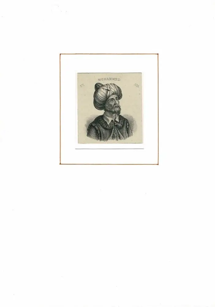 PORTRAIT Mohammed. (um 571 Mekka - 632 Medina. arabischer Religionsstifter). Schulterstück im Halbprofil. Stahlstich, Mohammed
