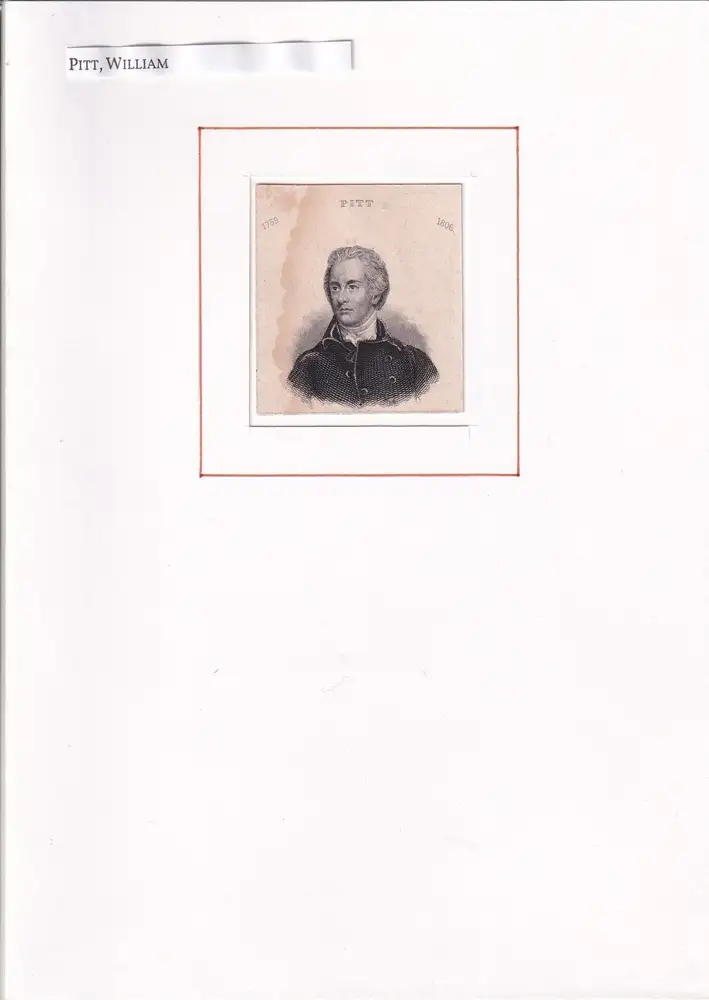 Miniatur-Porträt. - William Pitt der Jüngere war zweimal Premierminister von Großbritannien. - Wasserrandig u. mäßig braunfleckig
