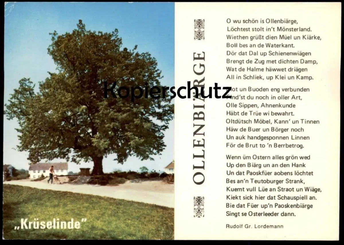 POSTKARTE KRÜSELINDE OLLENBIÄRGE ALTENBERGE LINDE BAUM TREE ARBRE Tilleul Linden Plattdeutsch Dialekt dialect postcard