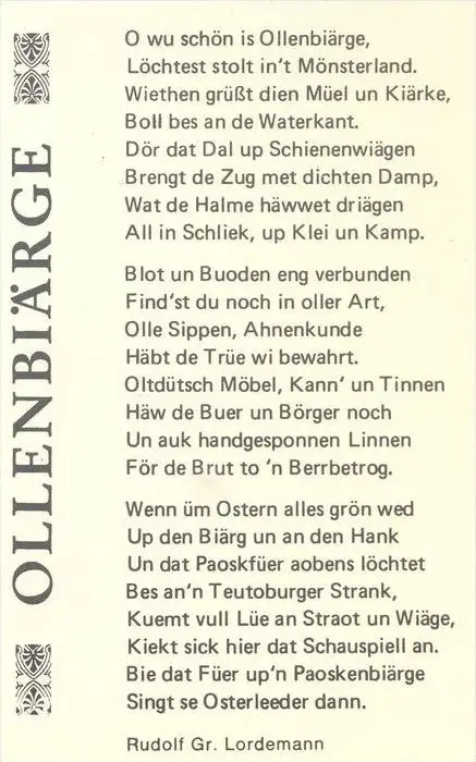 ÄLTERE POSTKARTE KRÜSELINDE OLLENBIÄRGE ALTENBERGE MIT GEDICHT VON RUDOLF GR. LORDEMANNVerlag: Lütke-Brinkhaus, Altenberge; Foto Muddemann, Telgte