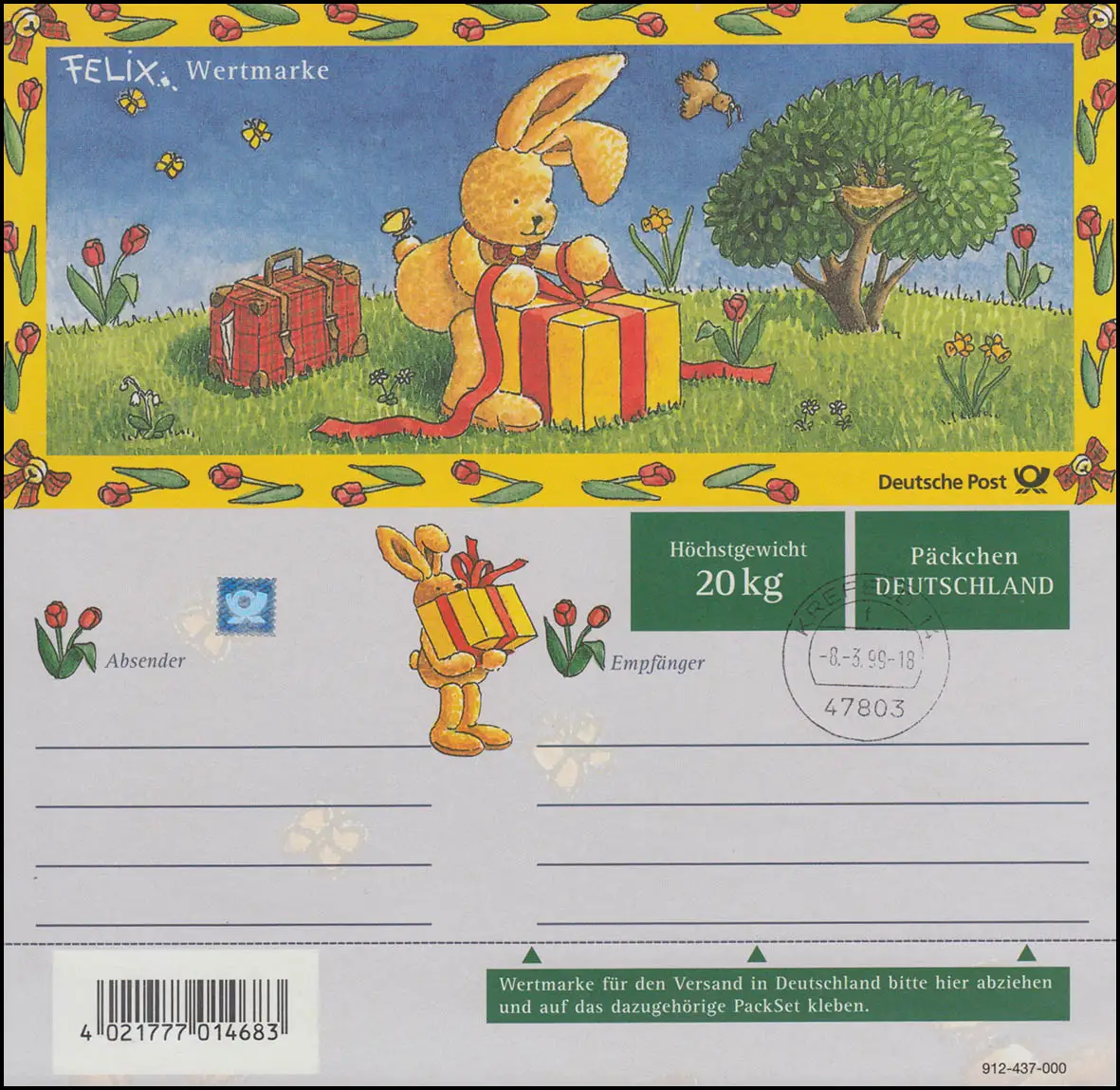 PZ 6/05 Felix ALLEMAGNE, cachet du premier jour KREFELD 8.3.99