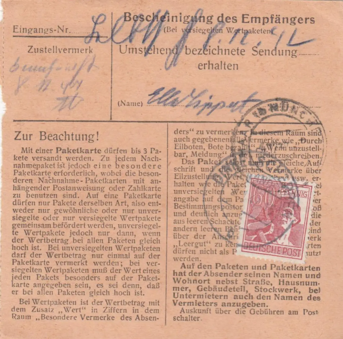 Carte de paquet 1947: Découpe par cheveux, Par les eilbots
