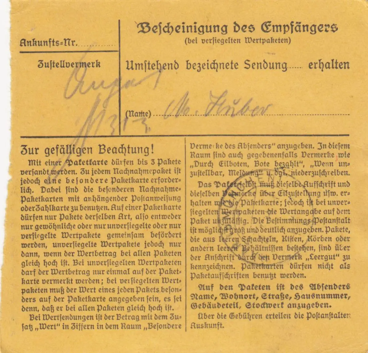 Carte de paquet 1948: pharmacien Lang Munich après Haar, auto-réservation