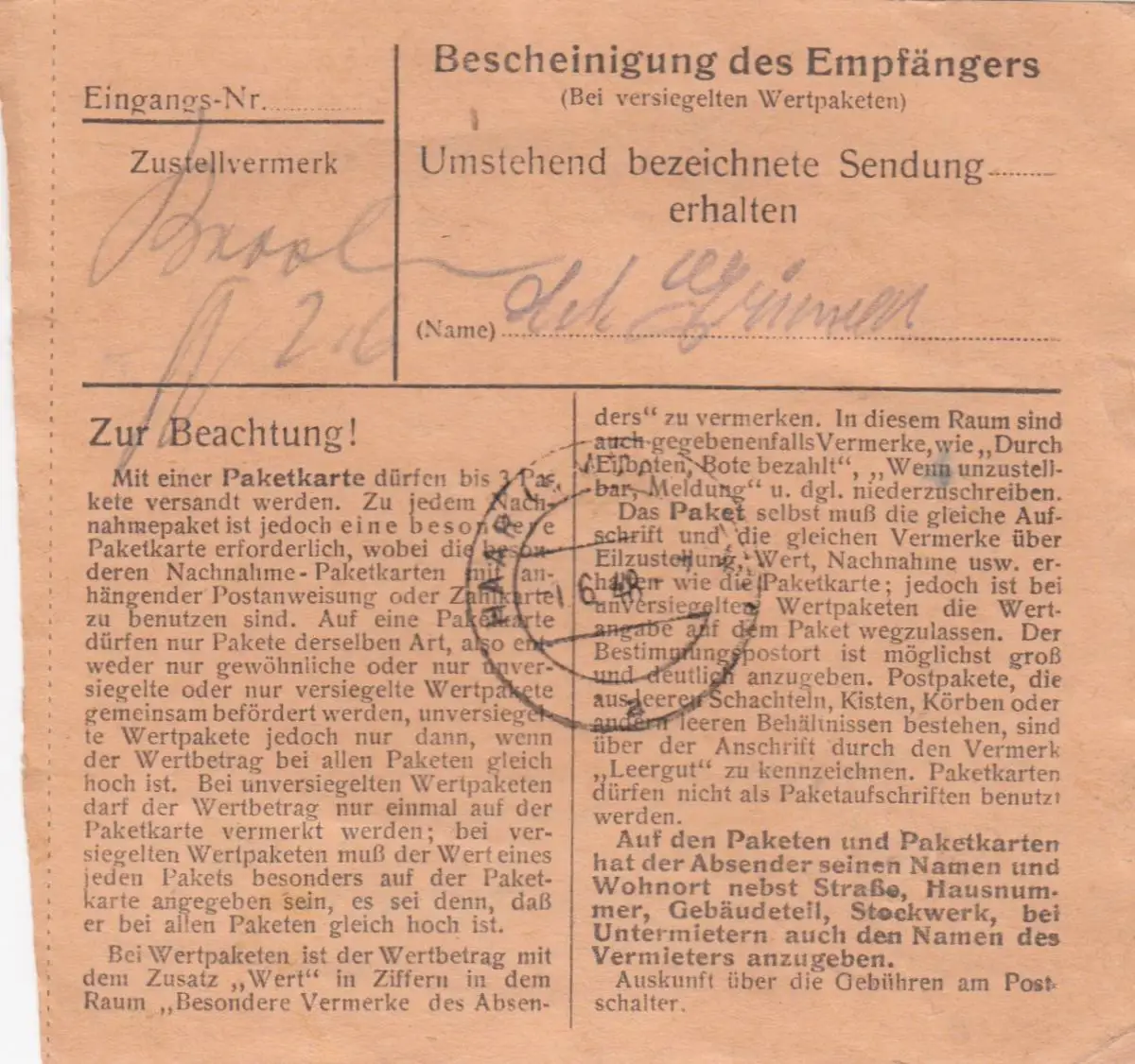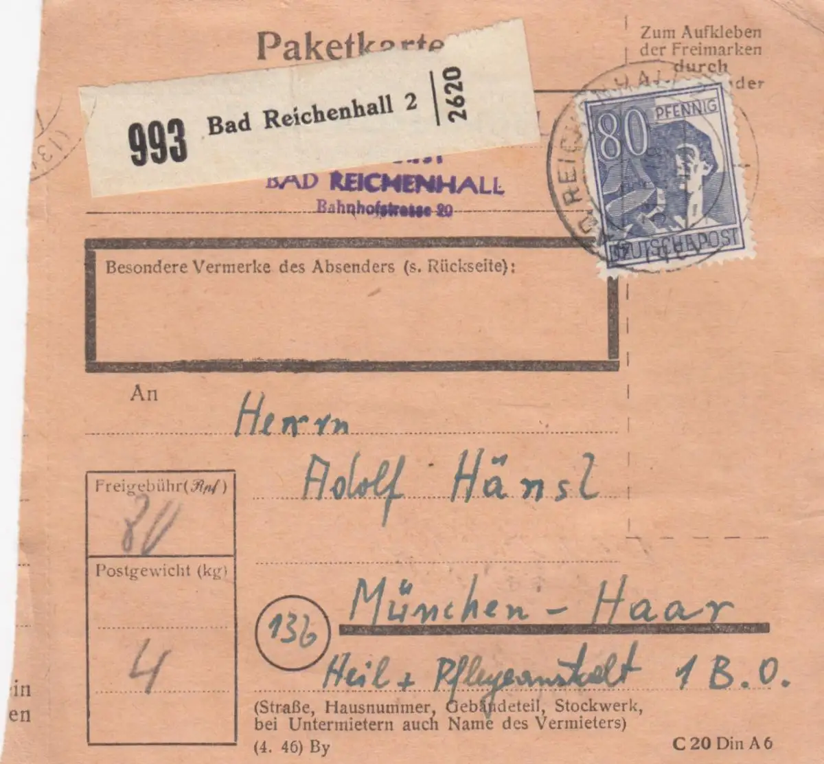 Carte de paquet 1948: Bad Reichenhall à Munich, Heilanstalt