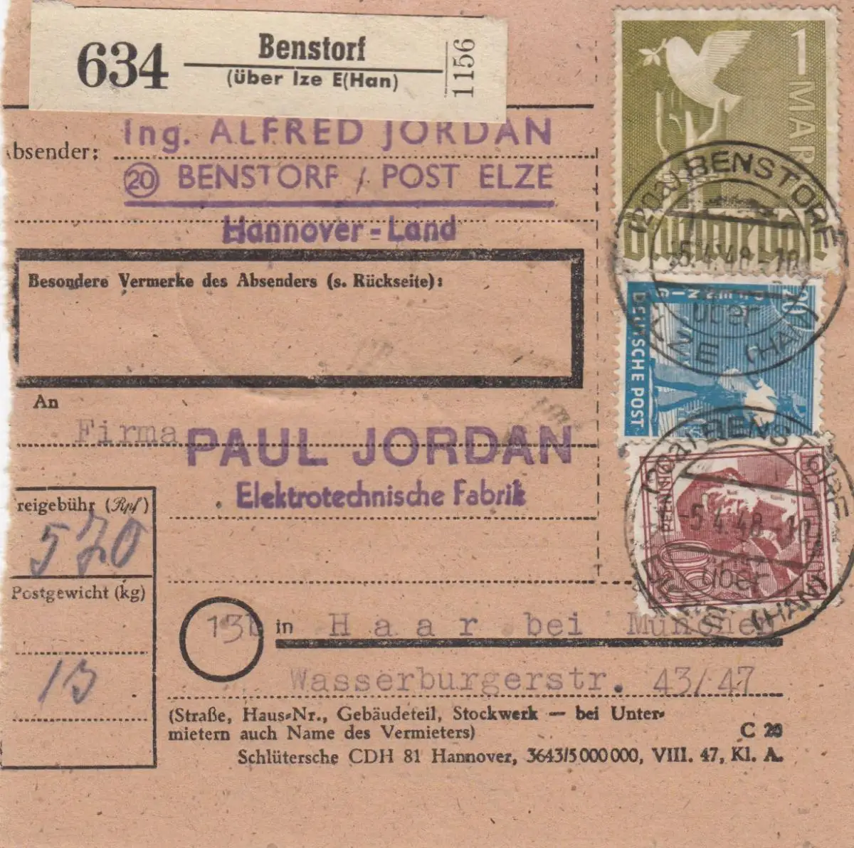 Carte de paquet 1948: Benstolf après cheveux, usine électrique