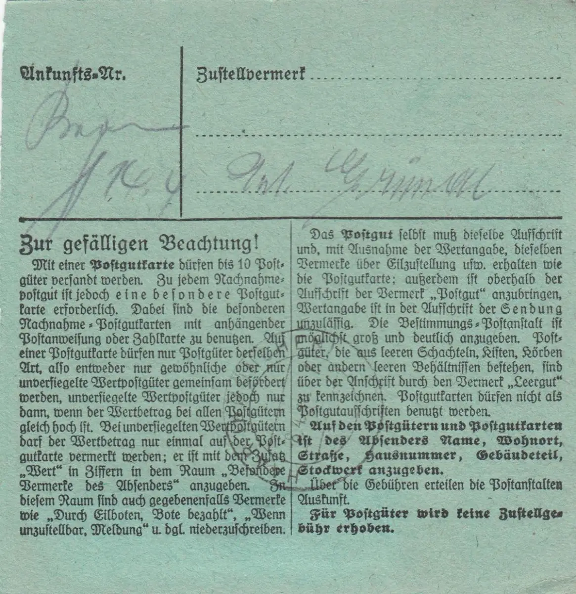 Carte de paquet 1948: Lägerdorf par Haar, formulaire spécial