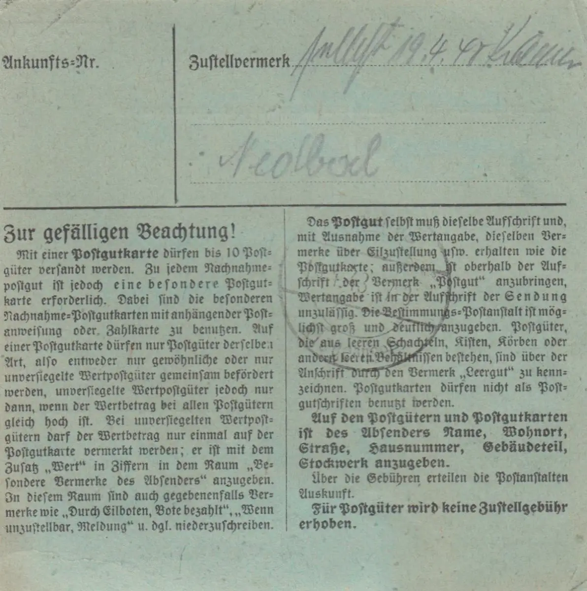 Carte de paquet 1948: Memmingen vers Gmund, formulaire spécial