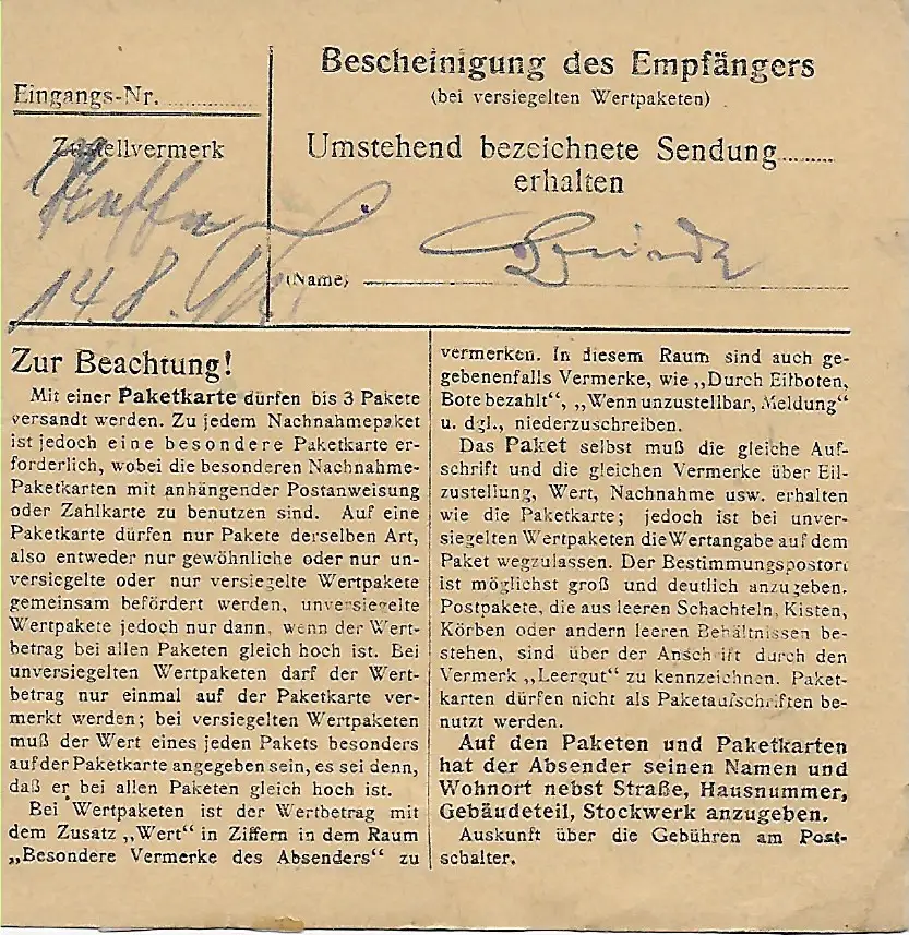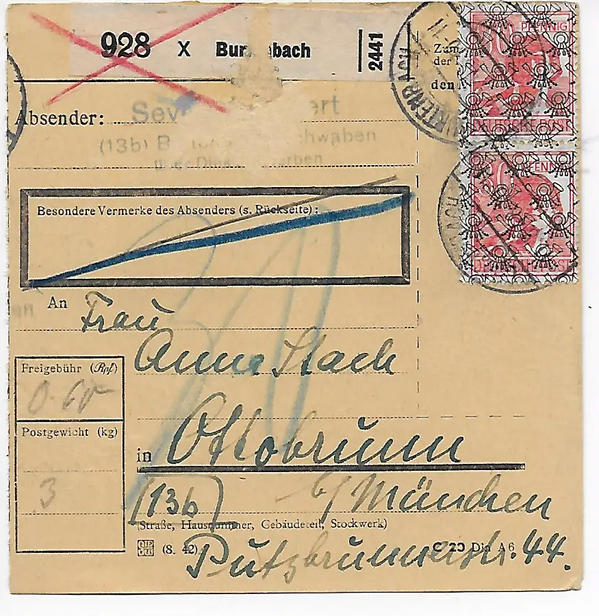 Carte de Burtenbach vers Ottobrunn, 1948, MeF