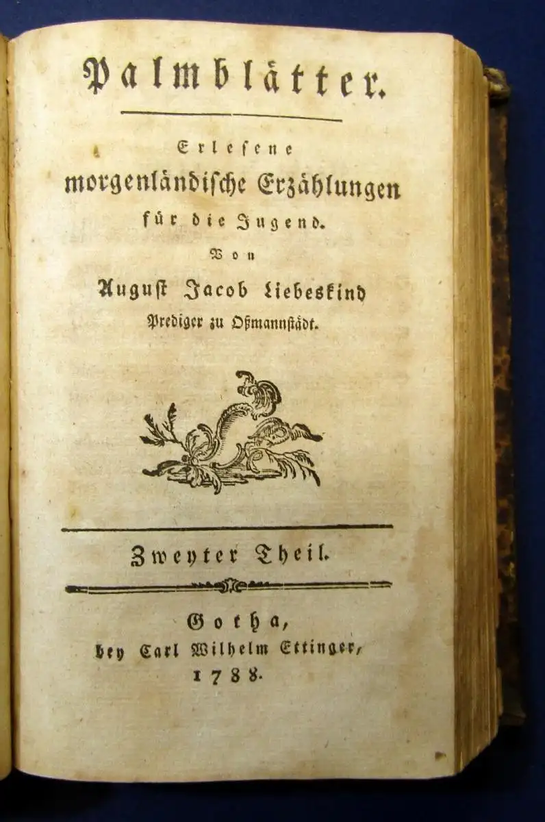 Der Herausgeber Liebeskind war unter anderem Hauslehrer der Kinder von Johann Gottfried Herder. 3 Bde. von gesamt 4 erschienenen.