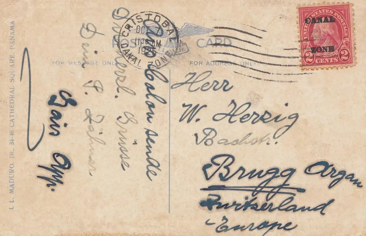 Panama 1925: post card: view Balboa to Brugg/Switzerland