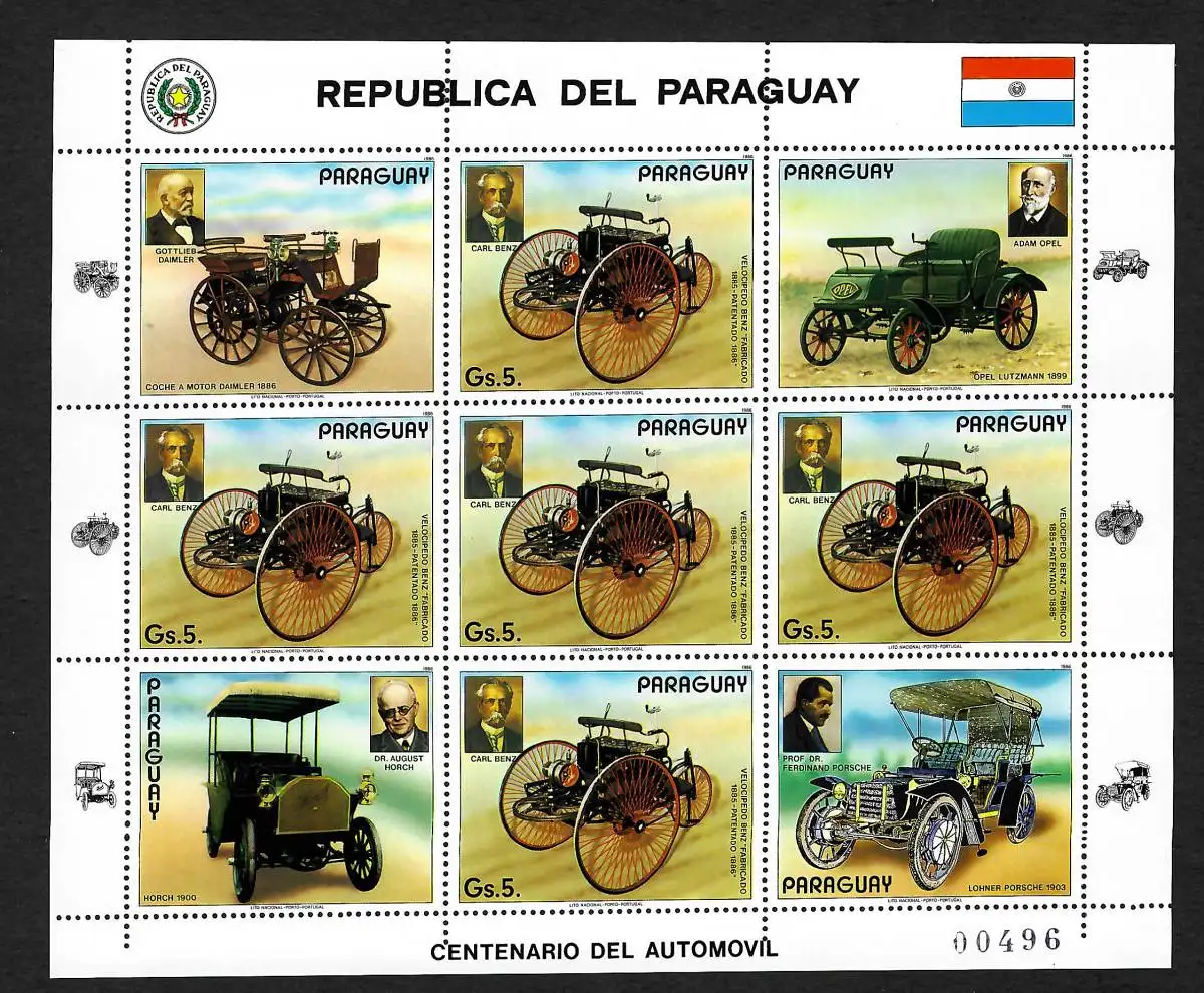 Paraguay: voitures historiques, #3979, arc de taille, frais de poste