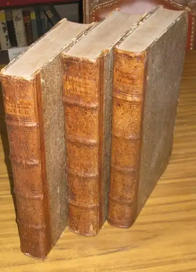 Freie Beschreibung: 4° (33,0 :21,0 cm). Drei uniforme Halblederbände der Zeit mit Rückentiteln auf je einem Rückenschild. Einbände etwas berieben, Ecken bestoßen. Innendeckel mit dem Ex Libris V. Conventus PP. Franciscanorum Vaciensium. Ein weiterer Stempel auf den Titelblättern. Hier auch mit wenigen handschriftlichen Ergänzungen in alter Tinte. (12), 593 (5) / (1), 582 (4) / (1), 724, (38) Seiten mit je einer gestochenen Schlussvignette. Im Innenbereich etwas gebräunt bzw. braunfleckig. Bände 2 und 3 mit kleinen Wurmfraßspuren an den Innendeckeln, Vorsätzen und wenigen ersten Blatt ohne Textverlust. Insgesamt gutes und dekoratives Exemplar
