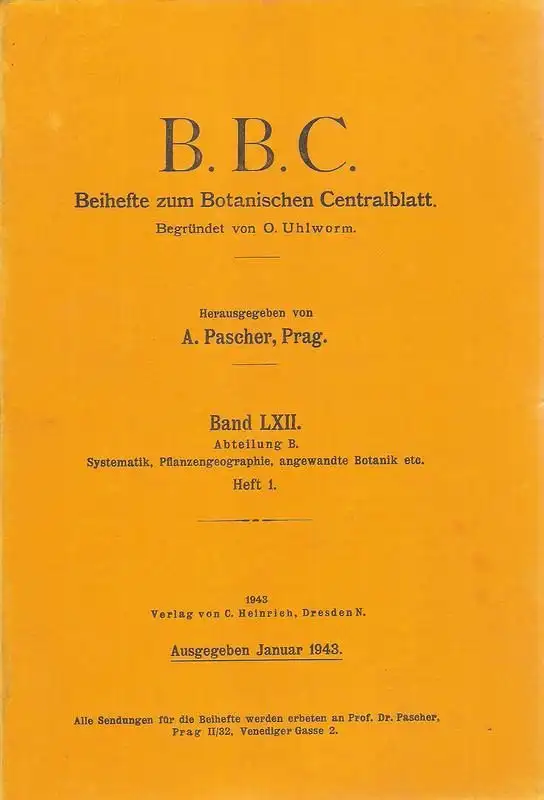 Pascher, A. (Hrsg.): B. B. C. Beihefte zum Botanischen Centralblatt. Band LXII. Abteilung B: Systematik, Pflanzengeographie, angewandte Botanik etc. Heft 1.