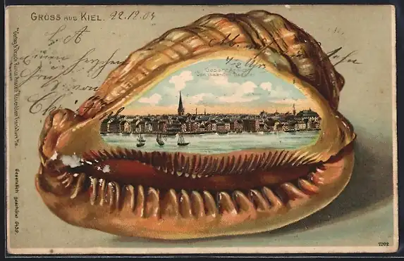 Passepartout-Lithographie Kiel, Gesamtansicht von der Gaarder gesehen