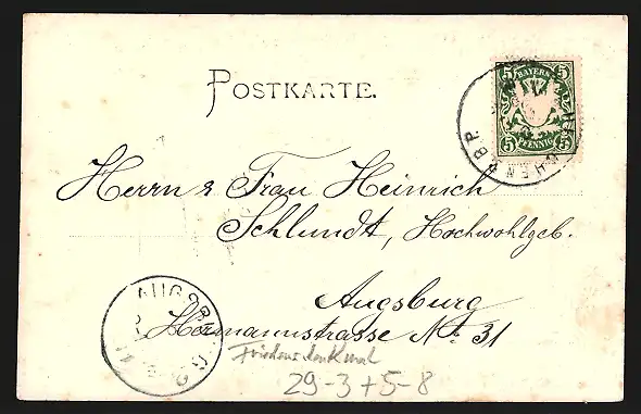 gelaufen 1901, Eckknicke li. unten u. re. oben, guter Zustand