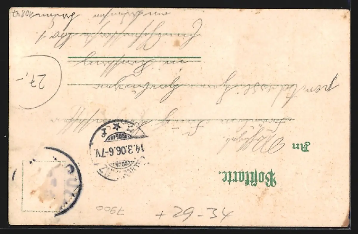 gelaufen 1906, Briefmarke entfernt, guter Zustand