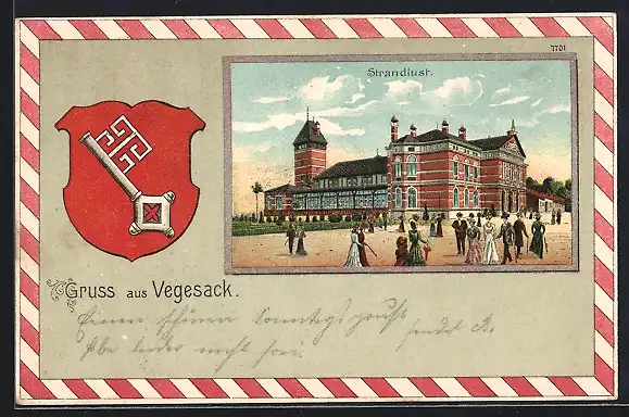 Passepartout-Lithographie Vegesack, Cafe Strandlust, Wappen