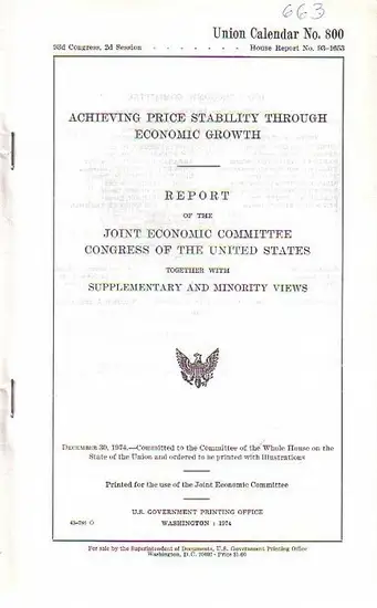 Titel: Achieving price stability through economic grwoth. Report of the Joint Economic Committee Congress of the United States together with supplementary and minority views