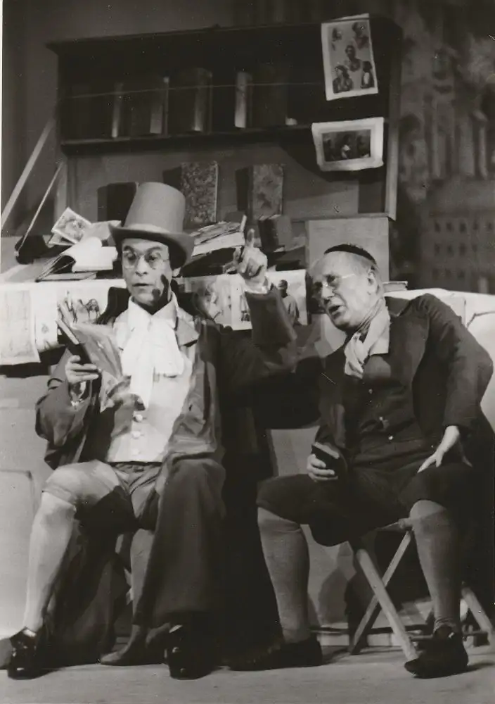 Paul Bildt: Szenenfoto PAUL BILDT und Ernst Deutsch in Die verlorenen Schuhe von Ernst Penzoldt AUTOGRAPH 1952.
