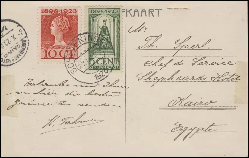 selon KAIRO avec le cachet d'arrivée 8.10.23 Vérification: original Numéro d 'article: 00000000031101