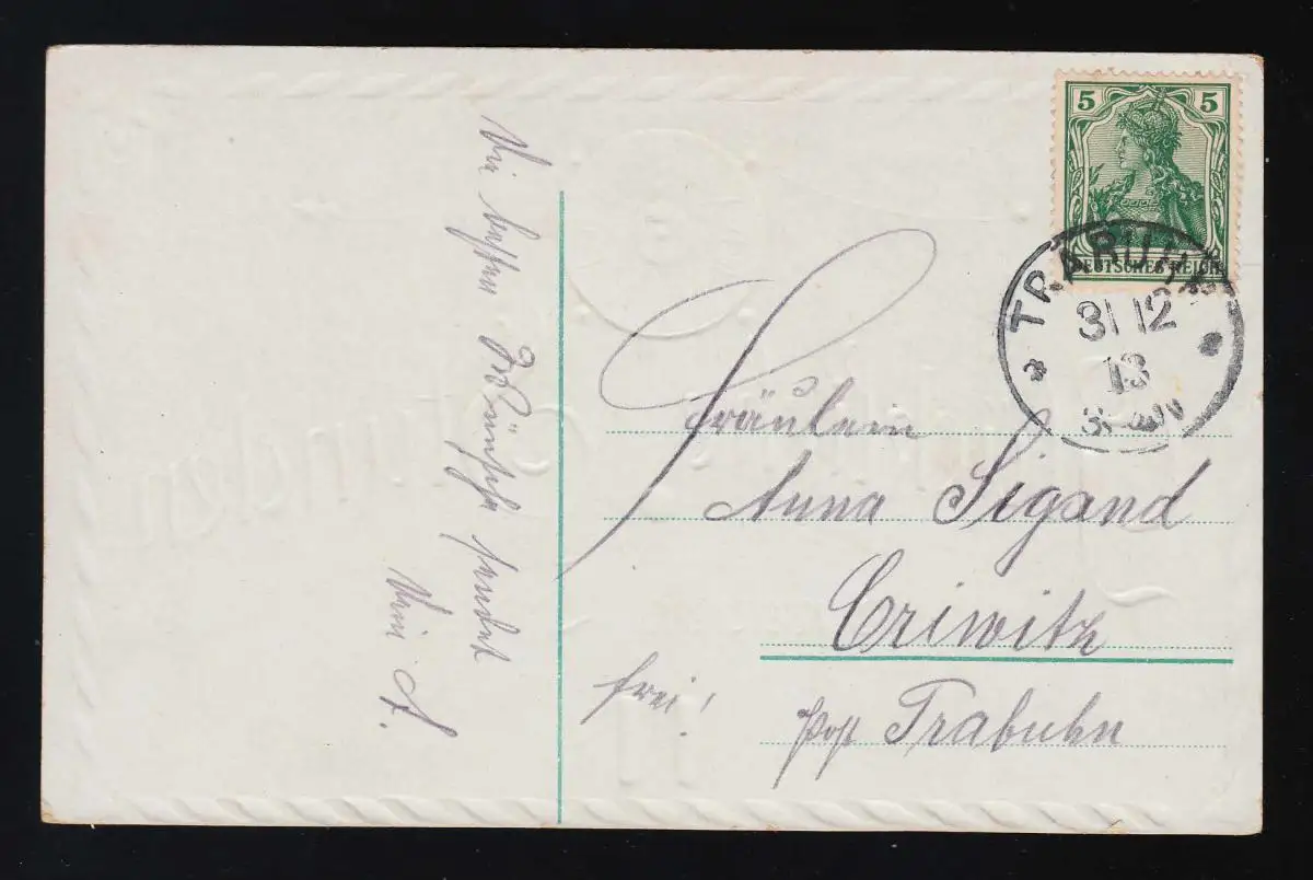 Pendentif montre orné, Heures heureuses dans la nouvelle année, Trabuhn 31.12.1913