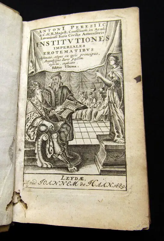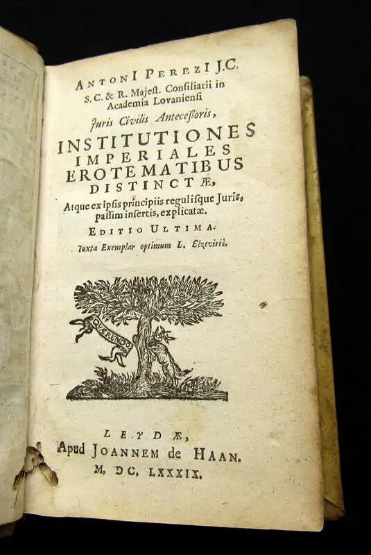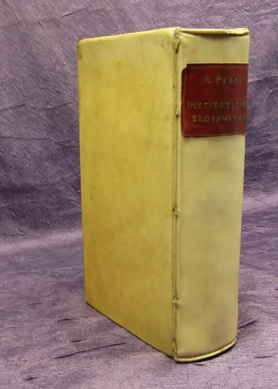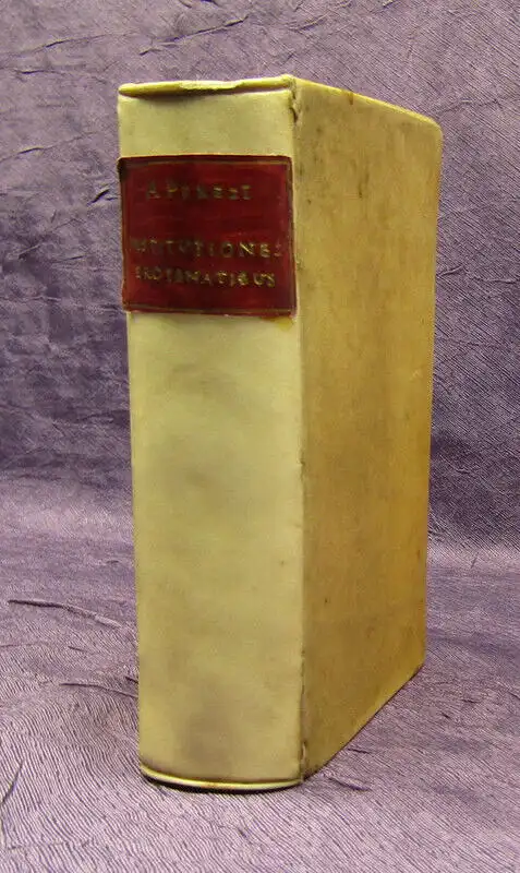 Einband berieben und bestoßen, Kapitale bestoßen, Wurmfraß mit leichtem Buchstabenverlust, Vorsatz mit hs. Vermerken, Papier altersbedingt gebräunt