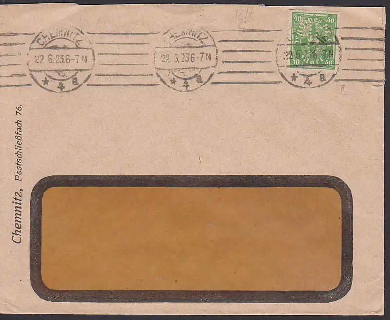 Perfin BMC Chemnitz 22.6.23 mit 40 Mark Infla