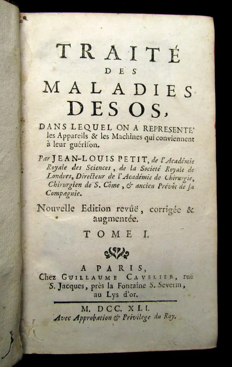 Jean-Louis Petit war ein französischer Chirurg und Anatom. Er lehrte neben Henry François Le Dran an der Académie royale de Chirurgie in Paris und gilt als Erfinder der Blutsperre, für die er einen speziellen Apparat entwickelte. Petit war der erste Chirurg, der planmäßige Operationen an der Gallenblase durchführte. Dies ist sein Hauptwerk. -
