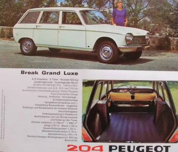 Peugeot 204 Modellprogramm 1966 Automobilprospekt (0525)