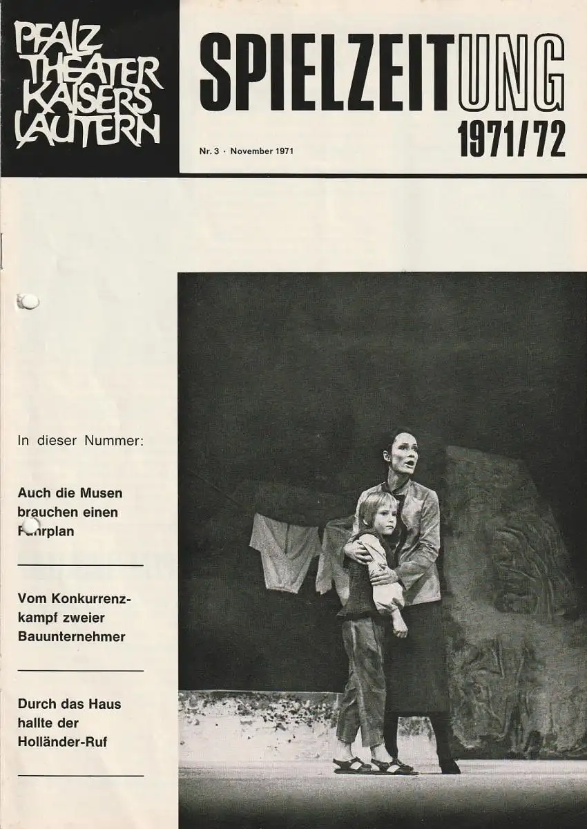 original Heft, Format ca. 29,5 x 21 cm, nicht paginiert, ca. 8 Seiten, Spielplan November 1971, Premierenankündigungen, einige Fotos. Zustand: gut, Ablagelochung