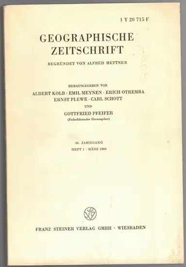 Pfeifer, Gottfried; Kolb, Albert; Meynen, Emil; Otremba, Erich; Plewe, Ernst; Schott, Carl (Hrsg.): Geographische Zeitschrift. Begründet von Alfred Hettner. 56. Jahrgang 1968. 1. [bis] 4. Heft Wiesbaden, Franz Steiner, März bis Dezember 1968.