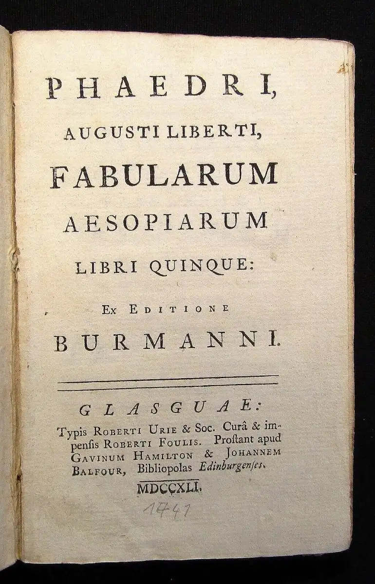 Phaedrus erste Hälfte des 1. Jh.s n. Chr., Freigelassener des Augustus, römischer Fabeldichter. Seine 5 Bücher "Fabulae Aesopiae", von denen nur ein schmaler Auszug erhalten ist, waren die erste Sammlung von Fabeln in der latainischen Literatur; den aus dem Griechischen überkommenen Themen fügte er Schwänke, Anekdoten und satirische Anspielungen auf seine eigene Zeit hinzu. Durch die dichterische Form (jambischer Senar) und sie Schlichtheit der Sprache suchte er Volkstümlichkeit zu wahren; das moralisieren treibt er schulmäßig.