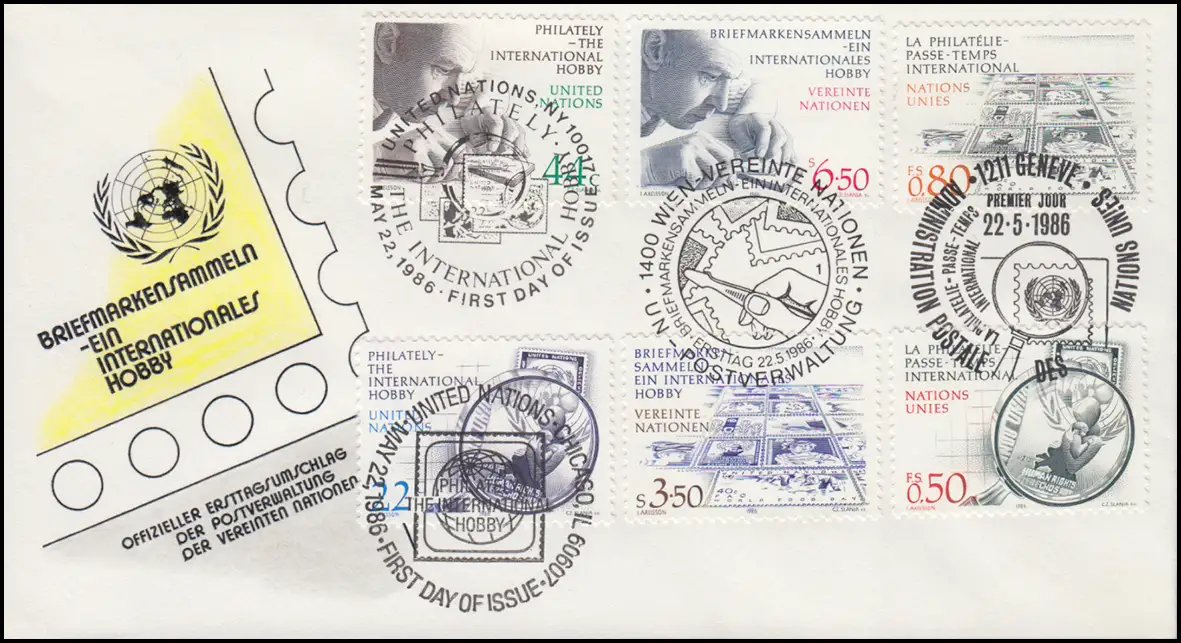 Philatelie et collection de timbres - FDC de bijoux des 3 numéros de l'ONU 1986