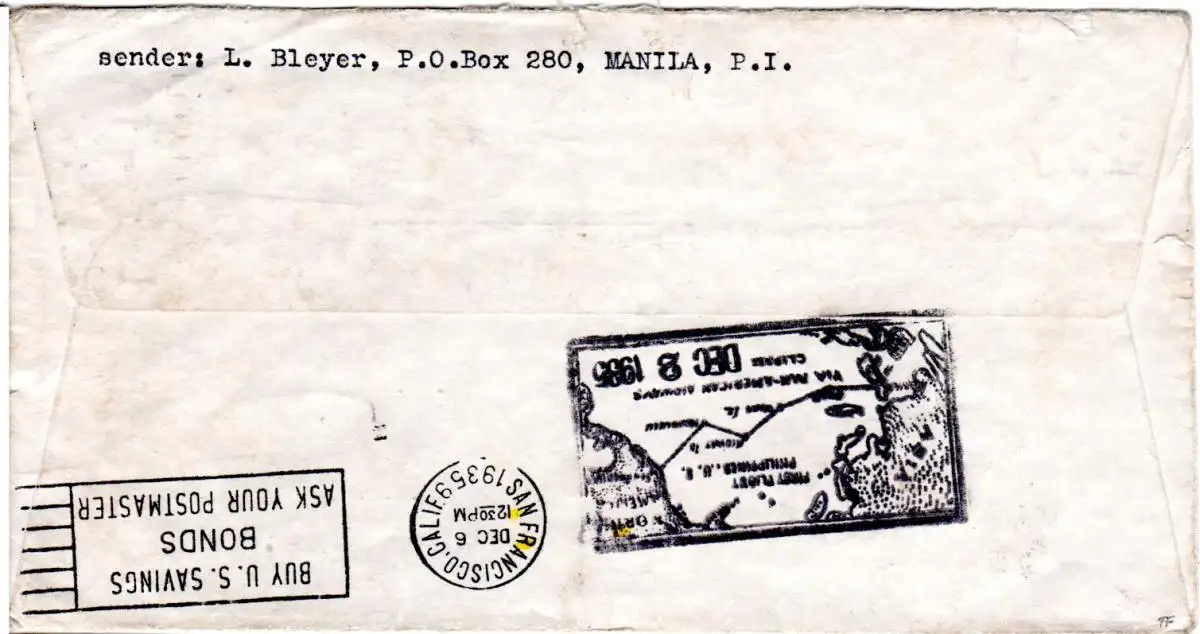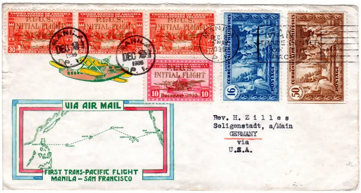 Philippinen 1935, 6 Marken auf Trans-Pacific Erstflug Brief v. Manila