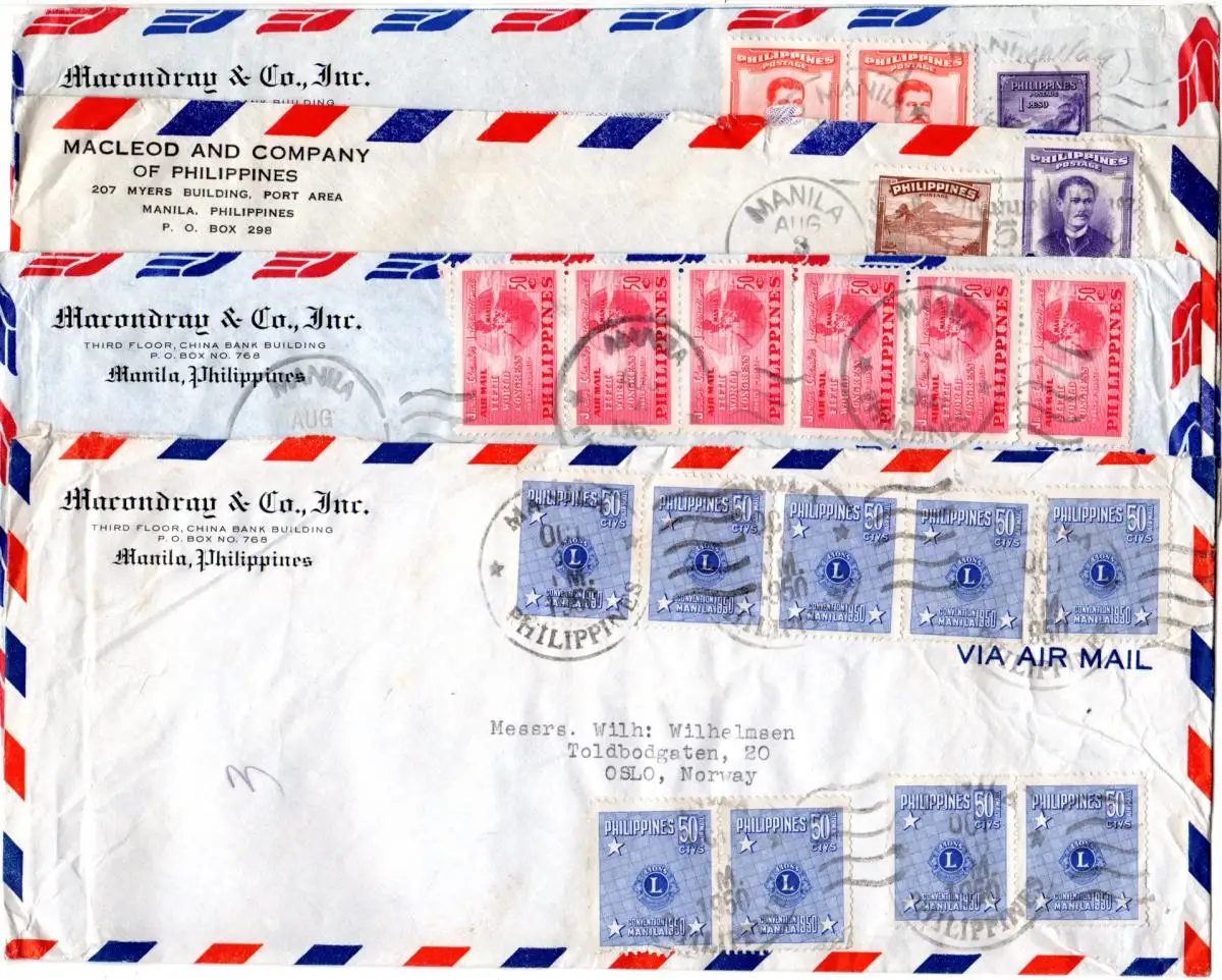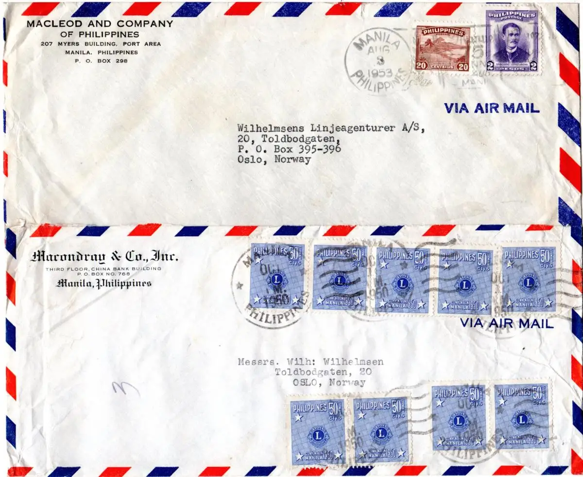 Philippinen 1950/53, 4 Luftpost Briefe nach Norwegen inkl MeF 9x50 C. Lions Club