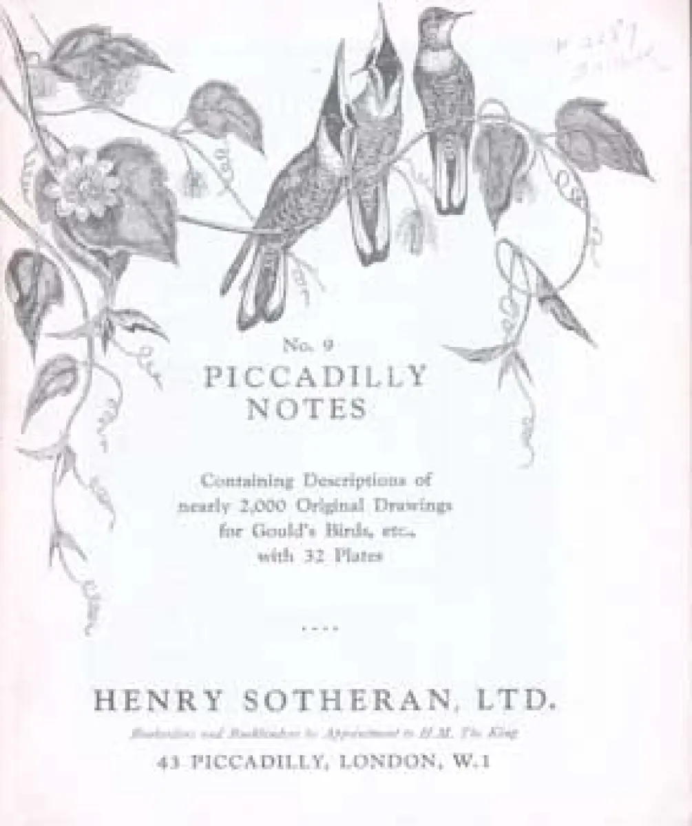 Piccadilly Notes No. 9. Containing Descriptions of nearly 2,000 Original Drawings for Gould's Birds, etc., with 35 Plates.