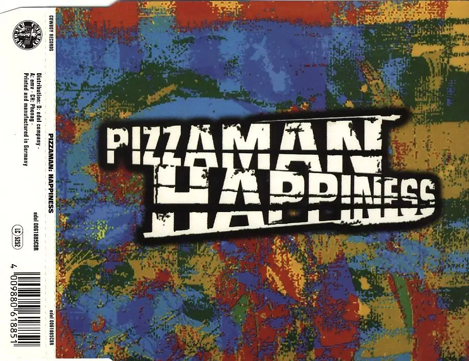 CD Single Pizzaman - Happiness, état CD VG Hülle M-; Fabriqué en Allemagne 1995 Cowboy Records 0061885 CBR, Tracks [Eat Me Edit] 3:26, [Club Mix] 6:55,[Play Boys Fully Loaded Dub] 7:52, Happeless 5:22, _Euro Mix) 5:21, (Play Boy Fully Loaded Dub II] 7,11