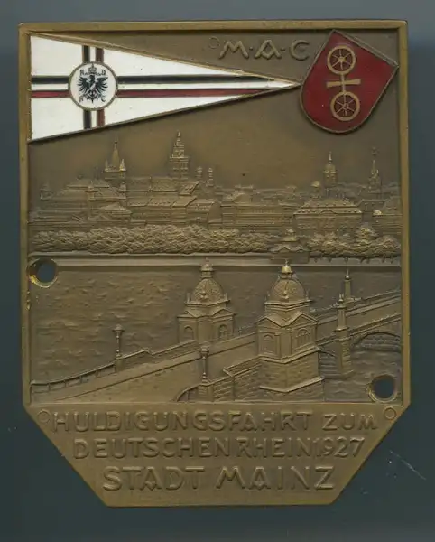 Plakette Huldigungsfahrt zum deutschen Rhein Mainz 1927